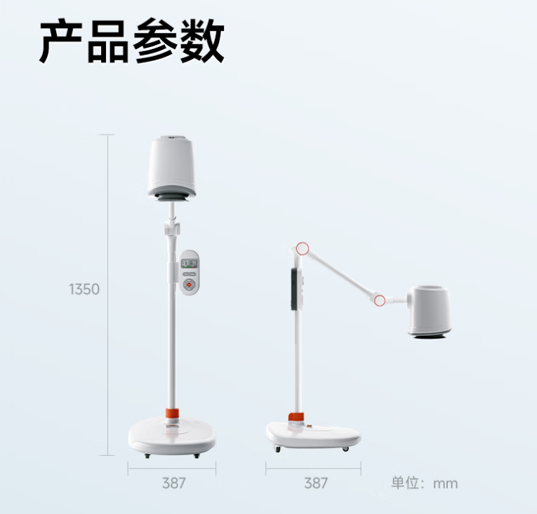 灸头、加热块、控制面板、支撑管、底座万向轮组成
